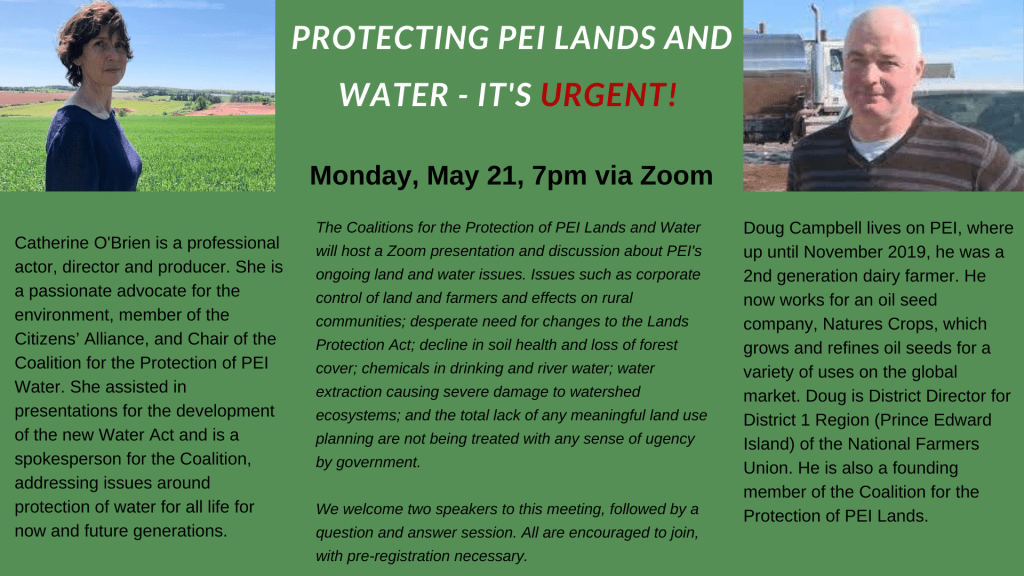 Many excellent farmers in the province realize that a healthy environment is critical to their future existence. To paint this issue as farmers versus non-farmers does them a disservice. Members of the National Farmers Union have long advocated for better management practices. Doug Campbell, PEI’s NFU District Director, was recently quoted as saying: “Why do we have no organic matter in our soil? The reason for that is because of the way the land is being farmed. Why is that? Because of pressure from industrialized farming.”